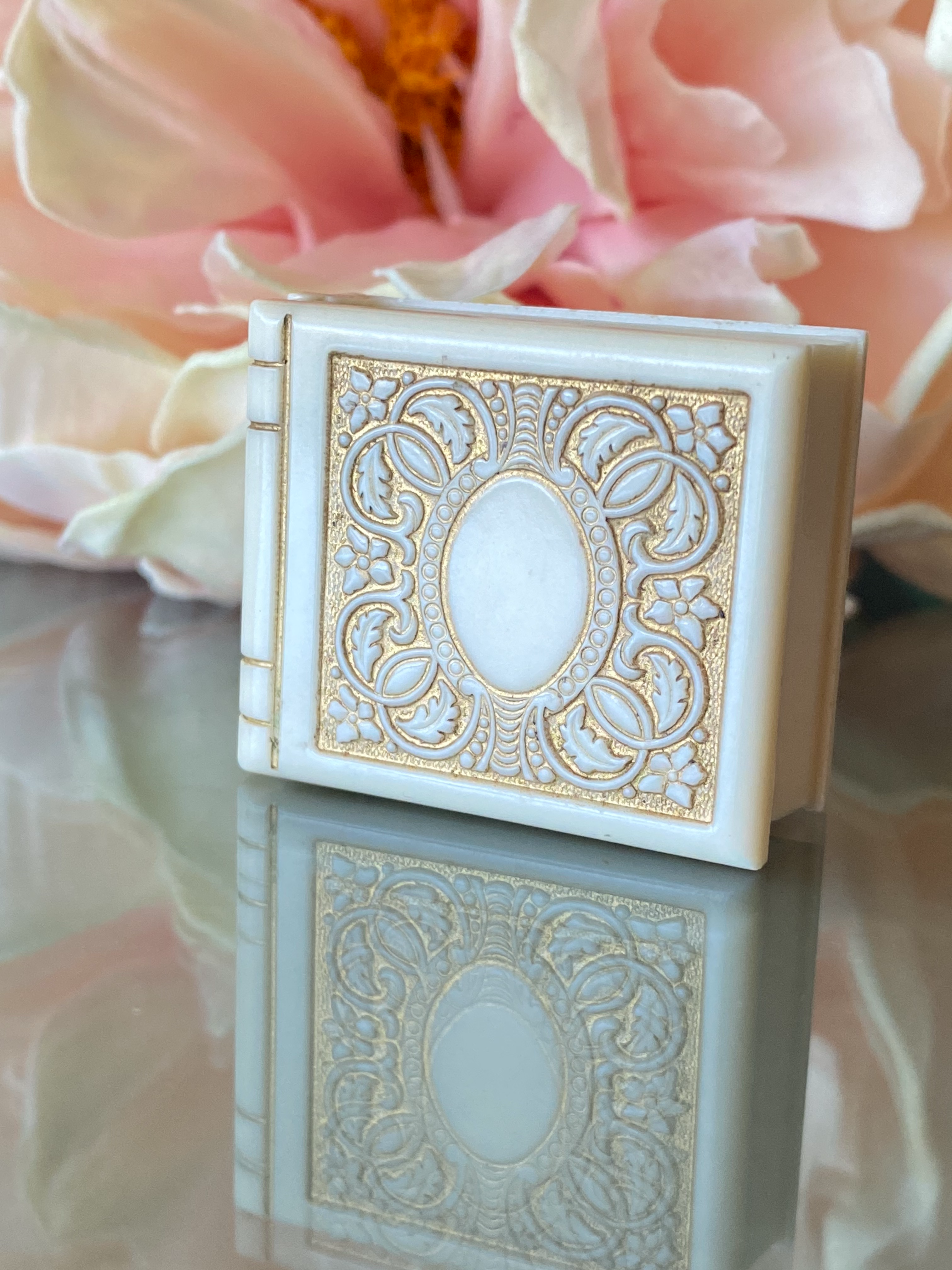 I don't think I've seen a more adorable baby ring. While far too small for most fingers, this would make the perfect addition to your necklace charms. Just loop it onto any chain, and boom, instant upgrade. The original box is a tremendous perk here, given it's perfect condition and unique book style shape. This is asolutely a winning combination.