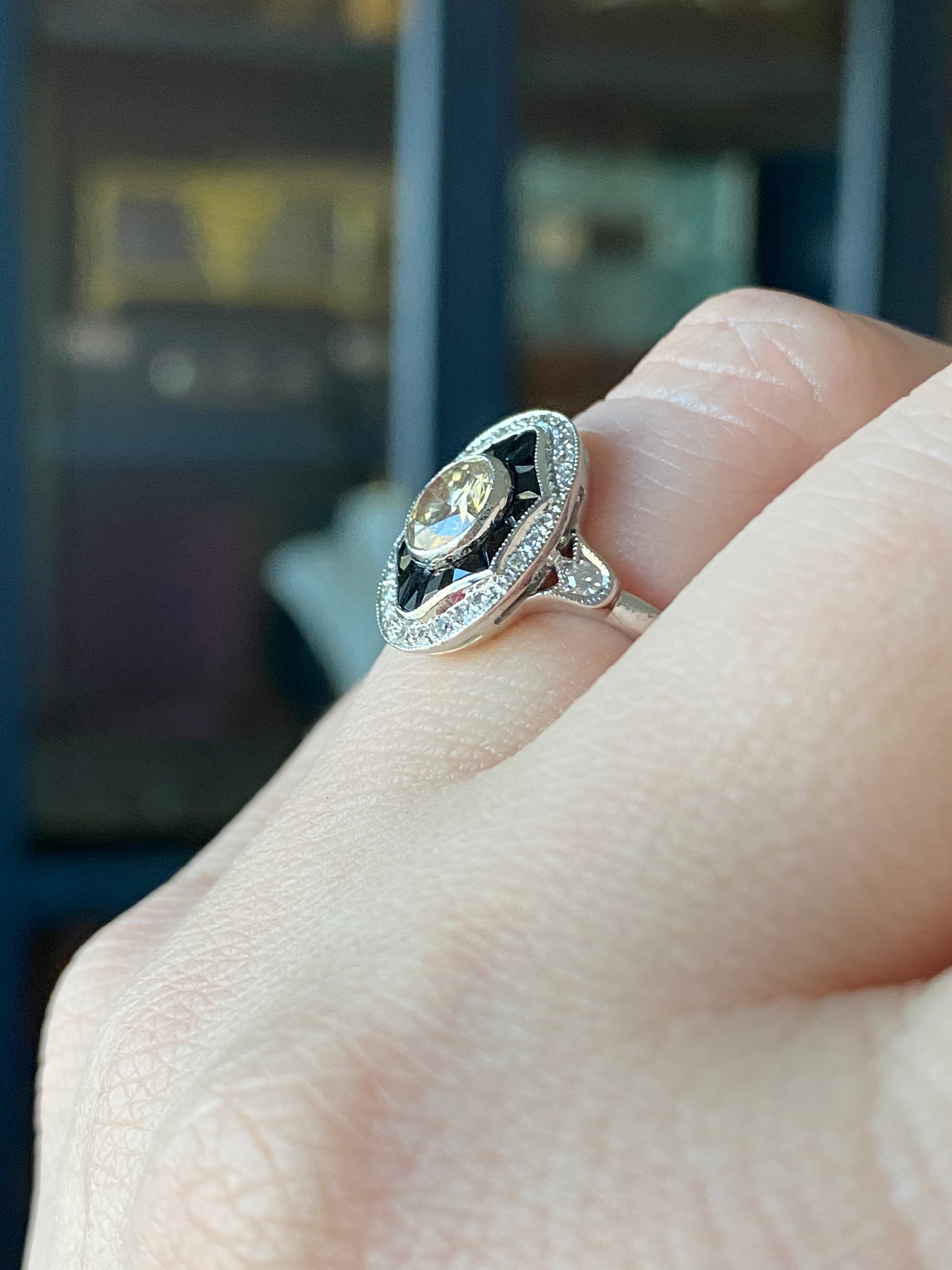 Art Deco Diamond and Onyx Ring 18ct White Gold