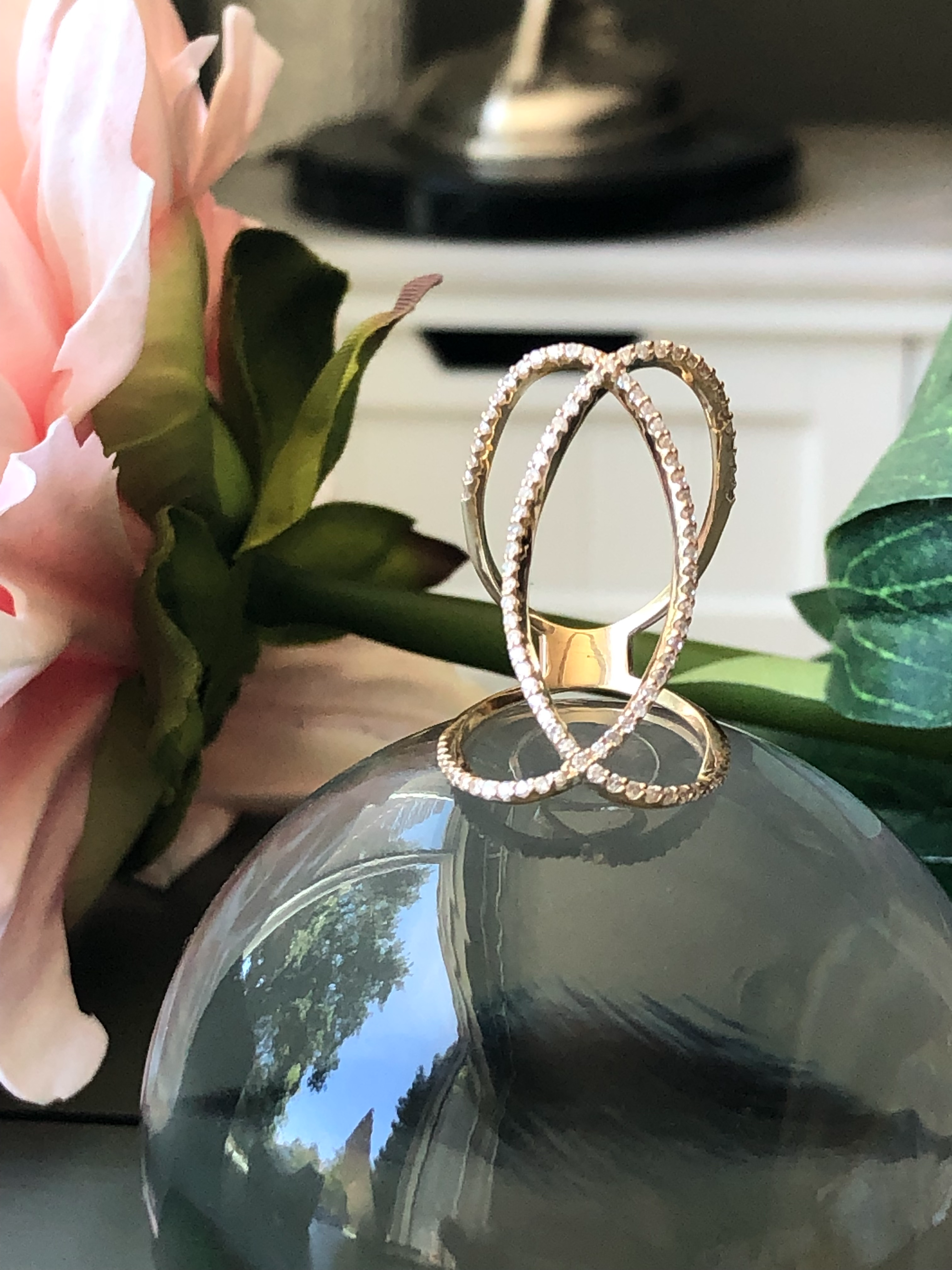 Pavé Diamond Cross Over Ring est en rupture de stock et sera envoyé dès qu'il sera disponible